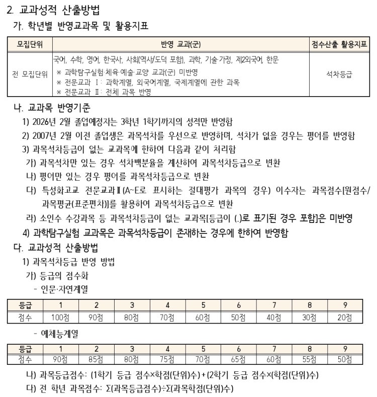 즉, 같은 1등급이라도 이수학점 차이로 특성화고 학생의 경우 수시 일반전형으로 지원하면 인문계 일반고 내신에 비교가 안됩니다.