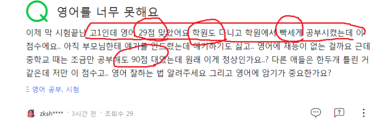 학원에서 문법수업하는건 1~2학년 수준인데도 다 틀려요