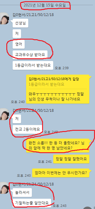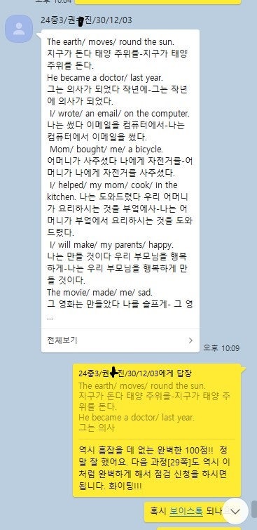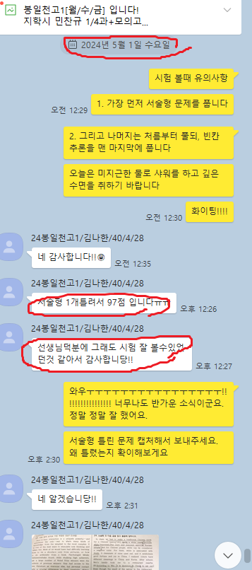 질문자 같은 학습자들 이곳에 <<학원 수강료로>> 편안한 요일과 편안한 시간에 1:1로 24시간 배울 수 있고, 24시간 자유롭게 질문하고 보이스톡으로 피드백 하면서 중학교 내신이든, 고교 모의고사든 내신이든 7~9등급들도 단기간에 1등급을 달성하게 해드리는 입시 전문가(유니크 쏙쏙 영문법 저자)가의 족집게 튜터링(수준별 맞춤형 인강+1:1 원격 개인지도+24시간 피드백=학원 수강료) 이 있으니 수많은 성적표를 보시고 참고해보세요. 성적표 첨부합니다. 블로그에 1000명이 넘는 학생들의 후기와 성적표/합격증이 업로드 되어 있으니 직접 확인해보세요.