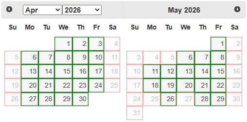 비자 인터뷰 이후 여권에 부착된 비자 스탬프를 수령하기 까지는 약 1주일 정도 소요됩니다. 일양택배 본사 지점 (마포)에 방문하여 직접 수령도 가능합니다만 우편을 통한 수령 시기와 큰 차이는 없습니다. 아울러 현재 일부 다른 비자 카테고리 (B1B2 또는 F1)의 경우 아래의 그림파일과 같이 내년 5월 날짜까지 예약이 가능합니다. 달력 좌/우측의 화살표를 클릭하여 3월 달력을 확인해보시기 바랍니다. 오픈된 날짜는 비자 카테고리에 따라 서로 상이하며, 만일 3월의 H1B 인터뷰 날짜가 아직 오픈되지 않은 경우에는 내년 1월 이후까지 좀 더 기다려보시기 바랍니다.
