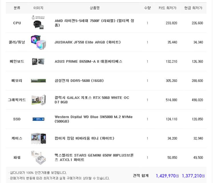 – 택배비, 조립비 등 모든 비용이 포함된 총 견적 금액을 꼭 확인하고 타사와 비교하세요.