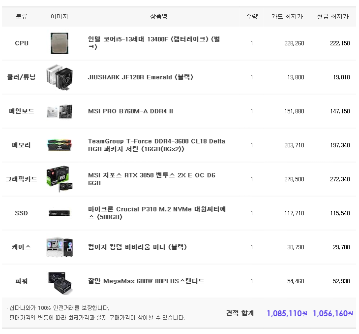 – 택배비, 조립비 등 모든 비용이 포함된 총 견적 금액을 꼭 확인하고 타사와 비교하세요.