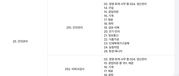 아래 안전 관리 분야 자격증 ( 산업안전 기사) 응시 자격 인정 기준을 보면