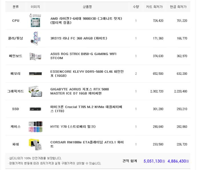 – 택배비, 조립비 등 모든 비용이 포함된 총 견적 금액을 꼭 확인하고 타사와 비교하세요.