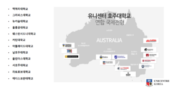 또한 유니센터 연계 호주대학교들에서는 매 학기 오로지 유니센터 학생들만을 위해 방문하여 직접 강의를 진행해주고 있습니다. 학생들은 이를 통해 한국에서부터 호주대학교의 학업 과정과 문화를 느끼고 탄탄한 호주유학 준비를 할 수 있습니다.
