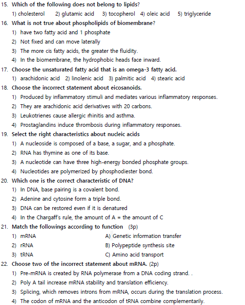 약대 - 유전학, 인간건강학, 생물학, 생화학, 해부학 등
